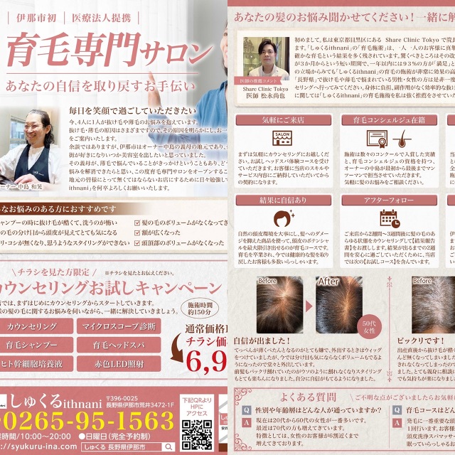 伊那店は育毛専門もしておりますので「敷居が高い」