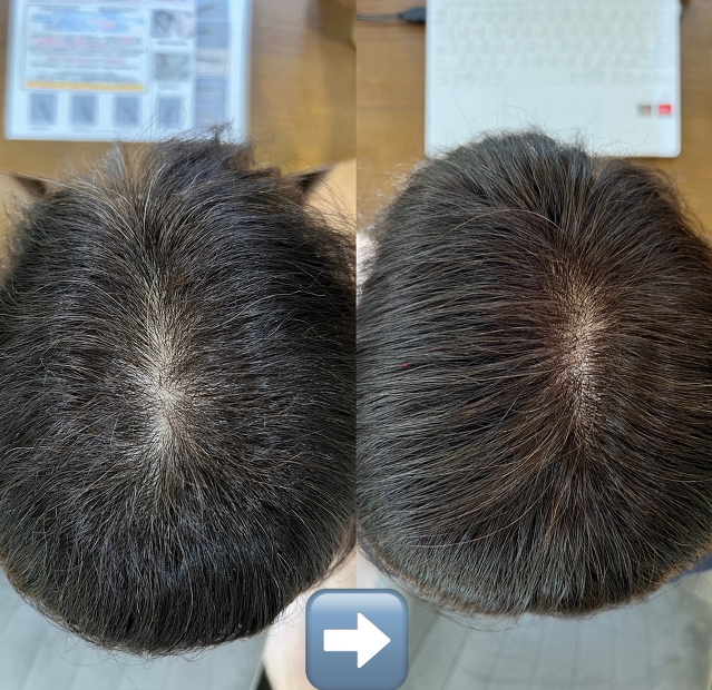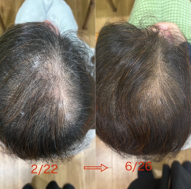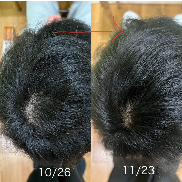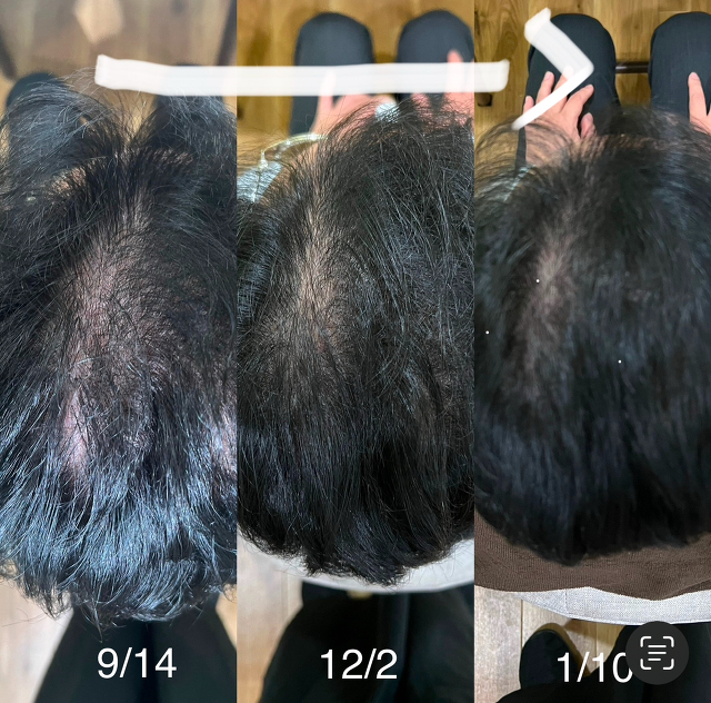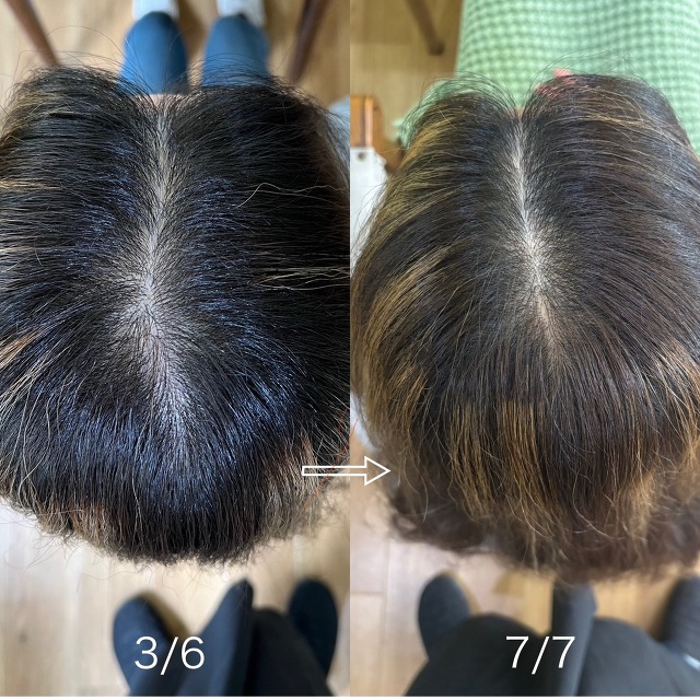 - 今まで毛量的に分け目が作れなかったのですが4ヶ月ほどで分け目が作れるようになりました!!とても順調に発毛しております^ ^