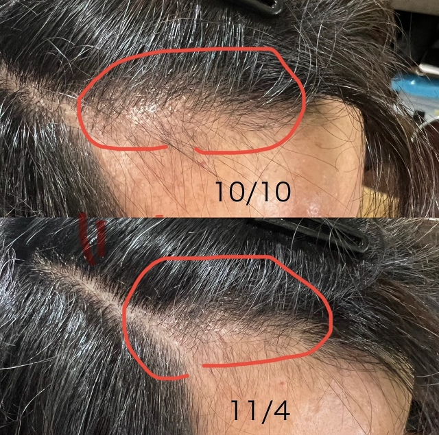 - まだご本人の実感は得られていませんが順調に発毛しております^ ^NMNも同時施術させていただいているのでスピード感ありますね!